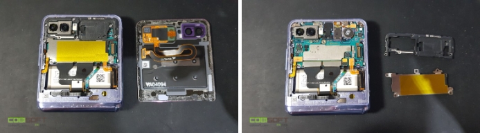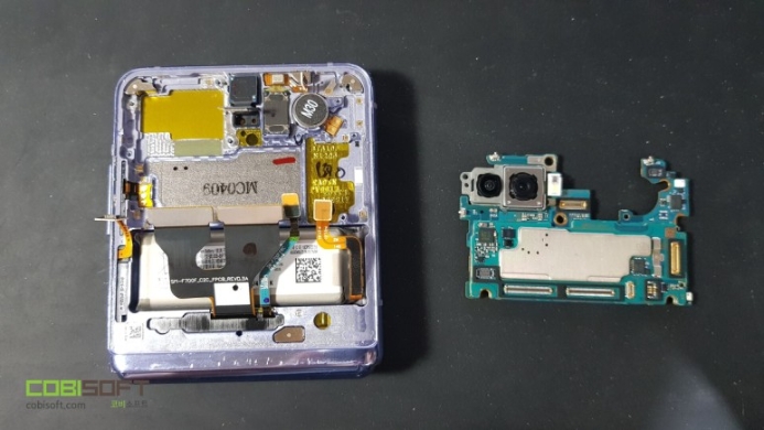 다음 안테나, 쉴드캡 부품까지 분리해주면 z플립 메인보드가 보이게 됩니다.