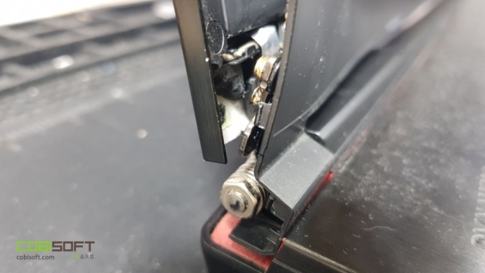 msi노트북 구조적 결함인지 유독 힌지불량. 팜레스트 불량이 많은 편이며 보통 위 사진처럼 왼쪽 또는 오른쪽 힌지