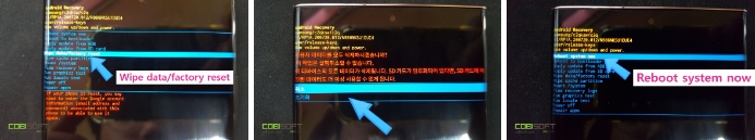 [ Wipe data/factory reset -> 초기화 -> Reboot system now ]