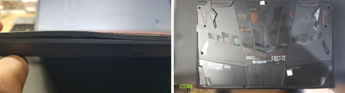 의뢰 모델 msi gf75 고장노트북 모델은 배터리스웰링 증상으로 노트북팜레스트 부분이 들떠있어 매우 위태위태해