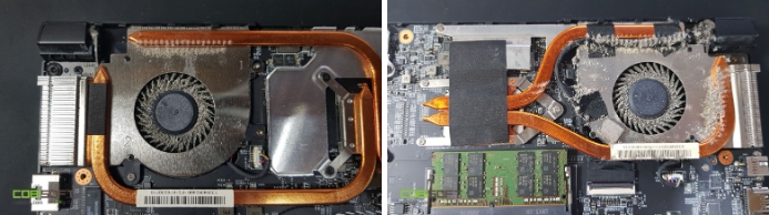 모델은 메인보드 부품까지 분리해서 히트파이프 분리 후 써멀까지 세척하고 재도포했습니다.