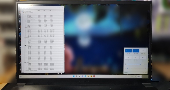 최소 43도! 게이밍노트북 치고는 양호한 편이며 배터리스웰링 증상으로 휘어진 팜레스트 역시 복원하고 다행히 기능