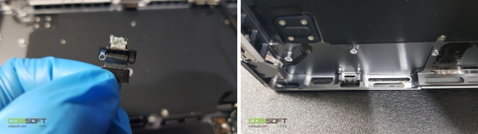 맥북 내부 세척 작업을 마치고 작동 테스트 중 특히 부식이 심했던 썬더볼트, HDMI 단자에 약간의 문제가 있어 한 번 더