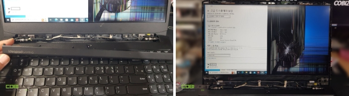 의뢰 내용 : 전면 노트북 액정 파손으로 인해 정상적 사용이 불가능한 상태