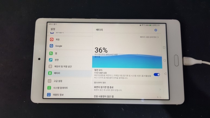 가성비 태블릿 화웨이 미디어패드 M3 라이트 8.0 모델은 위 왼쪽 사진을 보면 알겠지만 리튬이온배터리 부품의 고질적