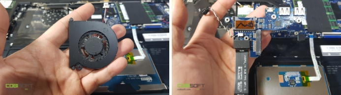 다 약간씩 다르지만 보통 배터리 분리 후 팬, i/O보드 등을 분리합니다.