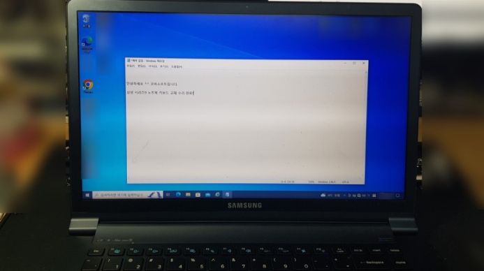 노트북 수리 후 조립을 하고 정상 부팅되는지 다른 기능상 문제는 없는지 키보드 교체 후 잘 눌리는지 이중눌림은 없는