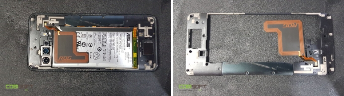 로그폰3 백커버 분리 후 바로 미들 프레임 분리! 게이밍폰, 게임폰 등으로 불리는 게임에 특화된 모델이라 발열 관리를