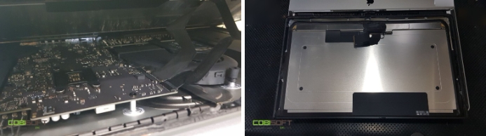 애플 컴퓨터 아이맥 모델은 구조상 마치 아이패드 태블릿 처럼 전면 LCD를 분리해야 내부를 볼 수 있는 디자인이고 안