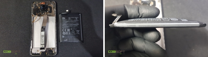 배터리스웰링 홍미노트 9s 스마트폰 배터리 분리 완료! 스웰링 상태라 재사용은 불가라서 바로 폐기하고 정상 배터리