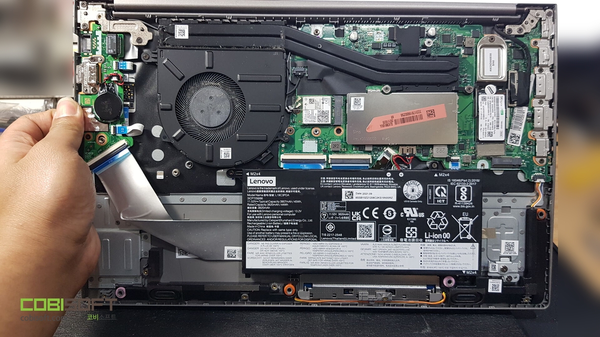 내부는 보통 랩탑과 비슷하게 하단에 배터리