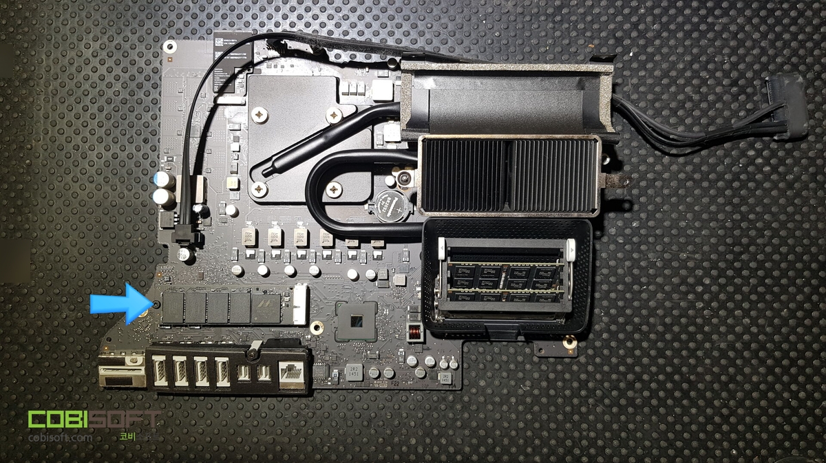 화살표가 가리키는 곳이 애플 SSD 부품이며