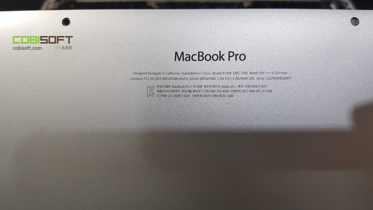 안녕하세요 ^^ 애플 랩탑 맥북 프로 사설수리 코비소프트입니다.