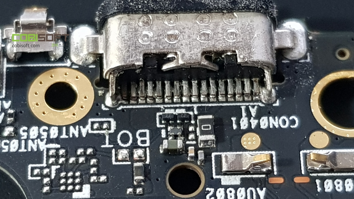젠폰 6 충전단자 분리 후 왜 충전이 안 되는지 정밀히 검사를 해보니 기본적으로 C타입 단자와 보드를 연결하는 납 부분에 크랙을 확인했으며 지속된 대미지로 인해 일부 충전 관련 ic 및 콘덴서 손상을 확인해서 수리보다는 교체를 결정했습니다 ^^