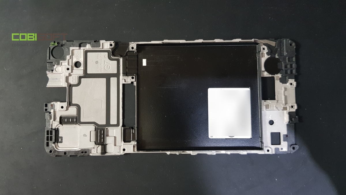 엑스커버프로 스마트폰 액정 부품을 분리하면 미들 프레임이 보이는데 일반 십자 볼트로 고정되며 상당히 빡빡하게 프레임과 물려있다 보니 분리가 쪼금 까다로웠지만 분리 완료!