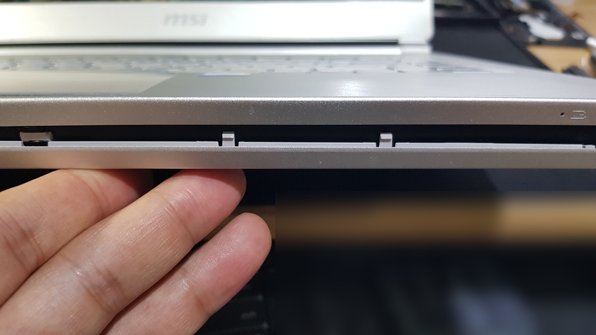 MSI P65 Creator 8RD 노트북 상태는..정면 샷으로 보면 멀끔해 보이지만 힌지파손, 배터리 불량 증상으로 인해 제대로 활용하지 못하는 상황이라 노트북 수리를 의뢰해 주셨습니다.