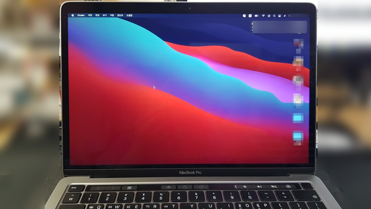 애플 MacBook Pro 13 A2338 노트북 상태는.. 위 사진을 보면 알겠지만 거의 액정 절반 정도에 줄이 가있는 상태로 크게 노트북 액정파손 문제는 안 보이는데 아마도 플렉스케이트 증상이 의심됩니다.
