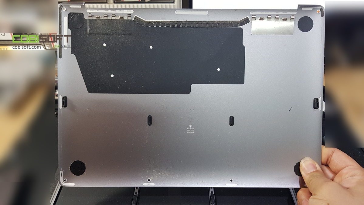 알루미늄 바디 즉 유니바디 형식의 맥북이라 후면 커버 역시 알루미늄으로 되어있고 여타 msi, 델, 삼성, LG 등의 노트북과 마찬가지로 노트북수리, 노트북 업그레이드 작업을 하려면 후면 커버 분리 필수!