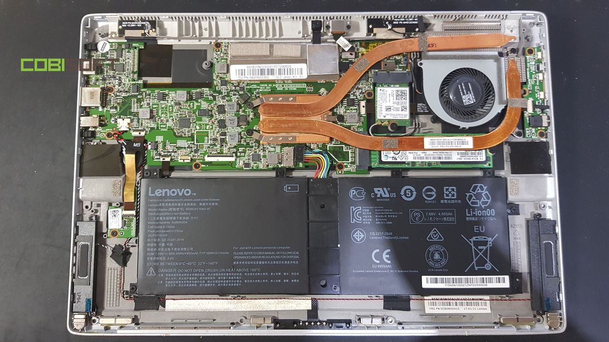2in1 윈도우 태블릿이라 전체적으로 노트북이랑 비슷한 내부 구조를 가지고 있는데 하단에 배터리, 배터리 좌우로 스피커, 그 위로 메인보드, 하드, 펜 등이 가지런히 배치됐지만 서피스프로 모델과 비교하면 많이 부실해 보이네요 ^^;;