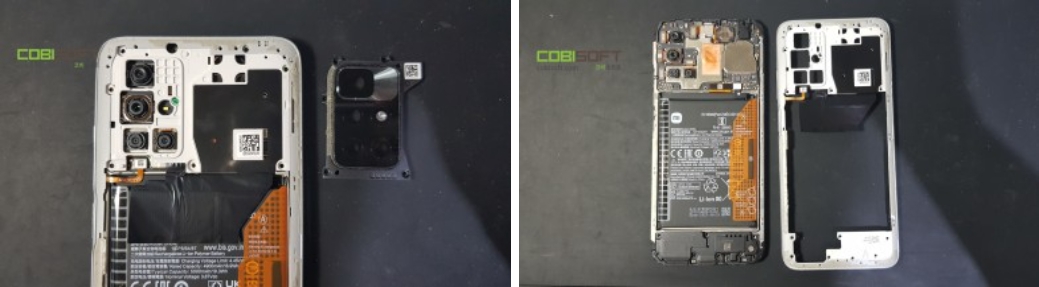 백커버 분리 후 카메라 섬, 테두리 프레임 분리! 많이 따라왔지만 그래도 원가절감이 됐는지 프레임은 플라스틱 소재로 되어있으며 측면에 지문센서가 있으니 주의하면서 분리해 주면 됩니다.