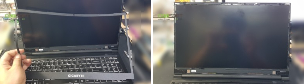 Msi, Dell 등의 브랜드와 달리 기가바이트 노트북들은 베젤 두께가 굉장히 얇기 때문에 꺾이거나 무리하게 힘을 주면 변형, 파손되는 경우가 많으니 신중하게 세심한 힘 조절로 베젤을 분리해야 재사용 가능!