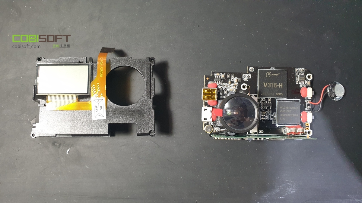 UPRO 액션캠 메인보드 분리! 커버, LCD 분리 후 같이 딸려오는 배터리 프레임까지 분리해 주면 메인보드 분리가 가능하며 문제의 와이파이 칩은 보드 뒷면에 위치하고 메인보드를 수리하는 작업이라 꽤 난이도가 있기에 전문 장비를 사용해서 작업을 해야 됩니다.