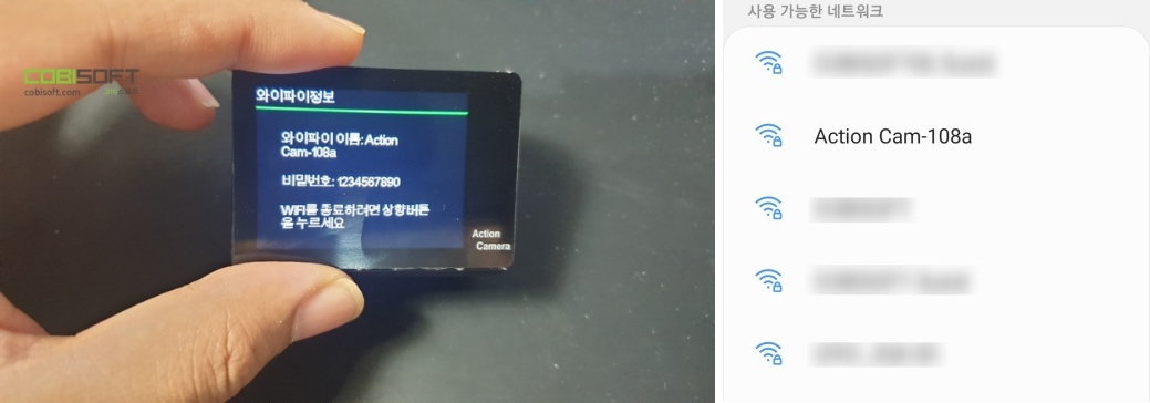 새것이라 당연히 문제는 없겠지만..그래도 확인은 해야 되기에 간단하게 작동 테스트를 하고 와이파이 연결이 되는지 보니 Acton Cam -108a 이라고 뜨는데 우리의 목표는 이 목록이 뜨지 않게 하면 되는 겁니다 ㅎㅎ