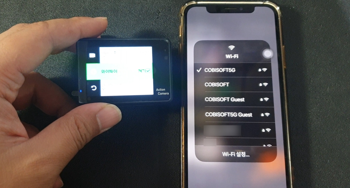 액션캠 와이파이 제거 후 정상 부팅되는지 다른 기능상 문제는 없는지 진짜 와이파이 연결은 안 되는지 스마트폰을 통해 확인했으며 다행히 칩을 완전히 제거했기에 목록 자체가 뜨지 않고 있으니 작업 성공!