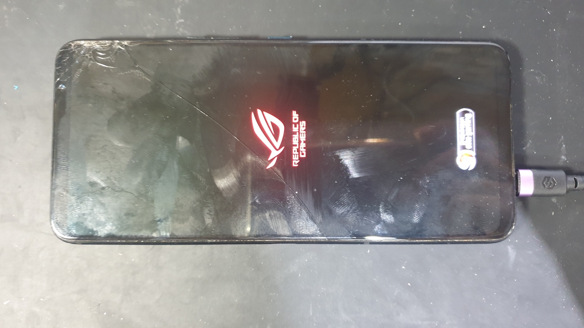 Asus ROG Phone 6 외산 게임폰 상태는....충전, 부팅 이상무! 하지만 액정 유리 파손으로 인해 정상적인 사용이 조금 힘들기에 에이수스 스마트폰 액정교체 수리를 하고자 택배 수리를 통해 코비소프트로 입고됐습니다.