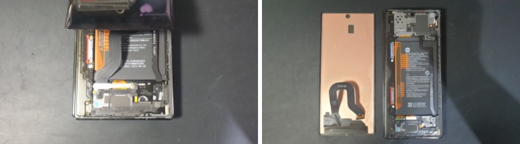 샤오미 믹스 폴드3 내부 공개! 외부 액정, 후면 백커버 부품을 분리하면 믹스 폴드 내부는 이렇게 생겼으며 백커버 분리가 생략됐는데 일반 바 형태 스마트폰 백커버 분리랑 비슷해서 그냥 적당한 열로 지지고 분리해 주면 됩니다.