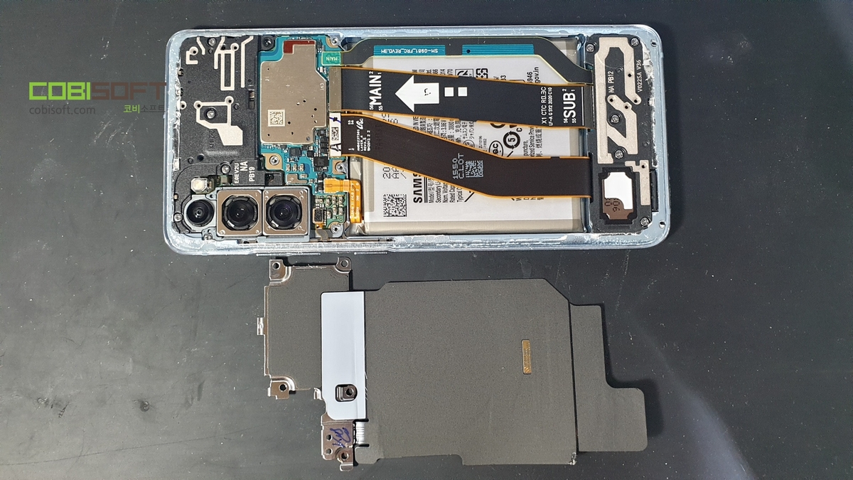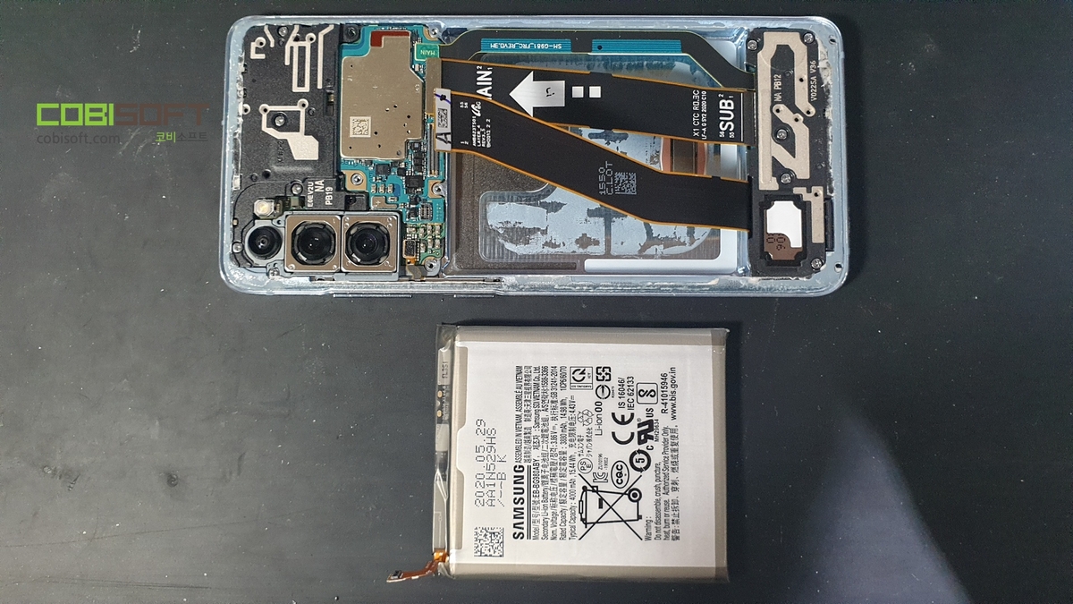 갤럭시 s20 플러스 배터리 분리! 무선충전 불량이 문제였는데 이왕 뜯었으니 스마트폰 배터리 교체 작업도 요청해 주셔서 무선충전패드 모듈 교체 후 빠르게 배터리까지 교체하고 작업 마무으리~~