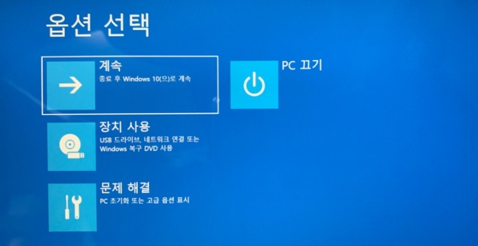 그럼 옵션 선택 화면으로 넘어가는데 여기서 PC 끄기 항목을 선택하면 노트북 완전 종료 완료!
