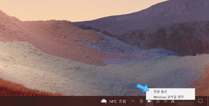 작업표시줄 오른쪽 끝 배터리 우클릭 전원 옵션 클릭!