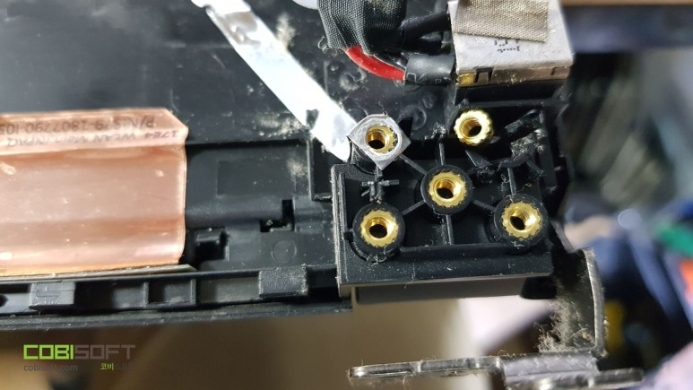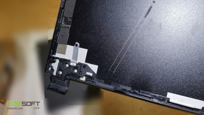 액정 상판 힌지 고정부 부분으로 msi노트북 대부분 모델의 고질적인 파손 부위이며 너트 및 고정부 모두가 완전히 떨어