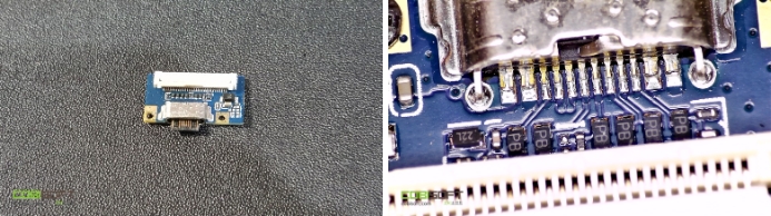위 사진을 보면 충전단자 자체 문제도 있지만 단자와 보드를 연결하는 납 부분의 크랙으로 인해 전류가 제대로 전달되지