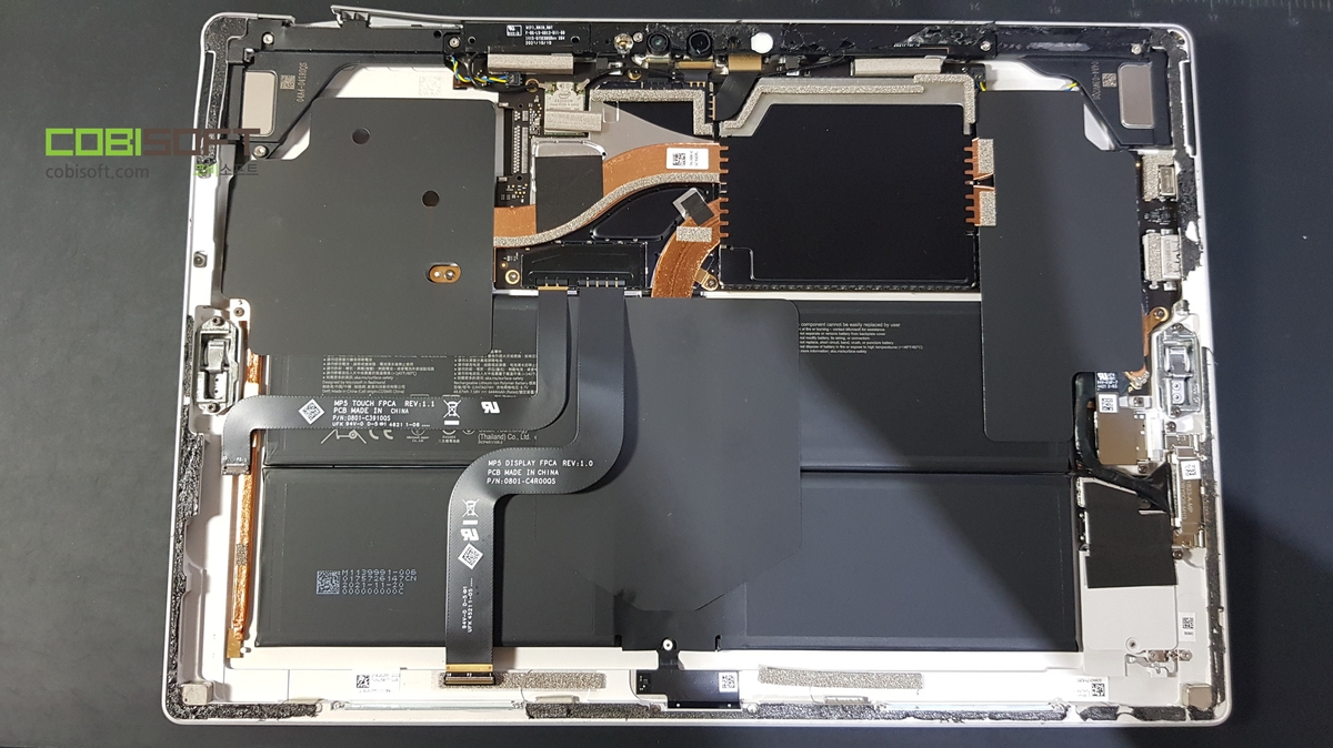 서피스 모델 자체가 발열이슈가 좀 있기에 히트파이프 부품이 꽤 큰 편이고 마치 애플 처럼 변태적인 설계로 인해 전체적인 부품들이 블랙톤! 또한 각 부품별 고정 볼트의 크기, 길이가 다르고 볼트는 육각볼트를 사용하기에 정밀 드라이버가 꼭 필요한 아주 까다로운 모델입니다 ^^;;;;;