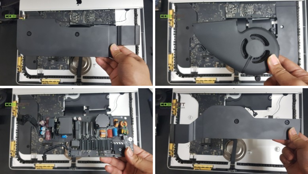 때문에 아이맥 메모리 교체 작업은 생각보다 시간이 소요되며 작업자마다 다르겠지만 보통 스피커, 팬, 파워, 스피커 순으로 분리해 주면 됩니다.