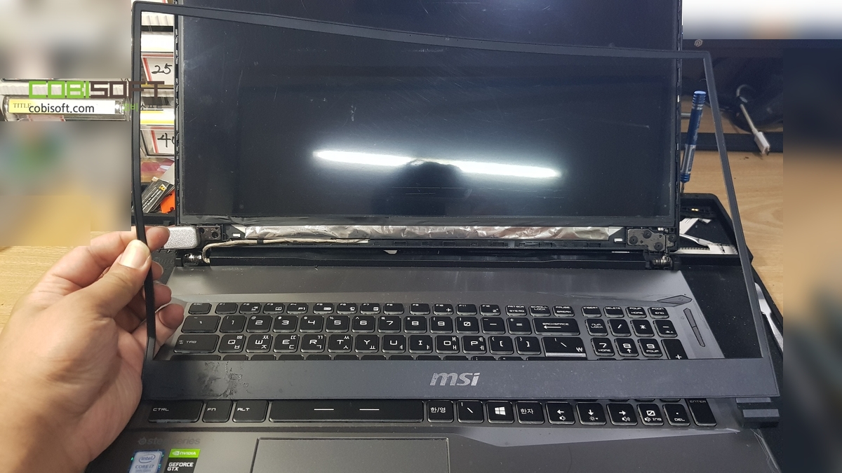 외산 pc msi GP75 레오파드 9SD LCD, 힌지 프레임 파손 노트북 수리- by cobisoft.com