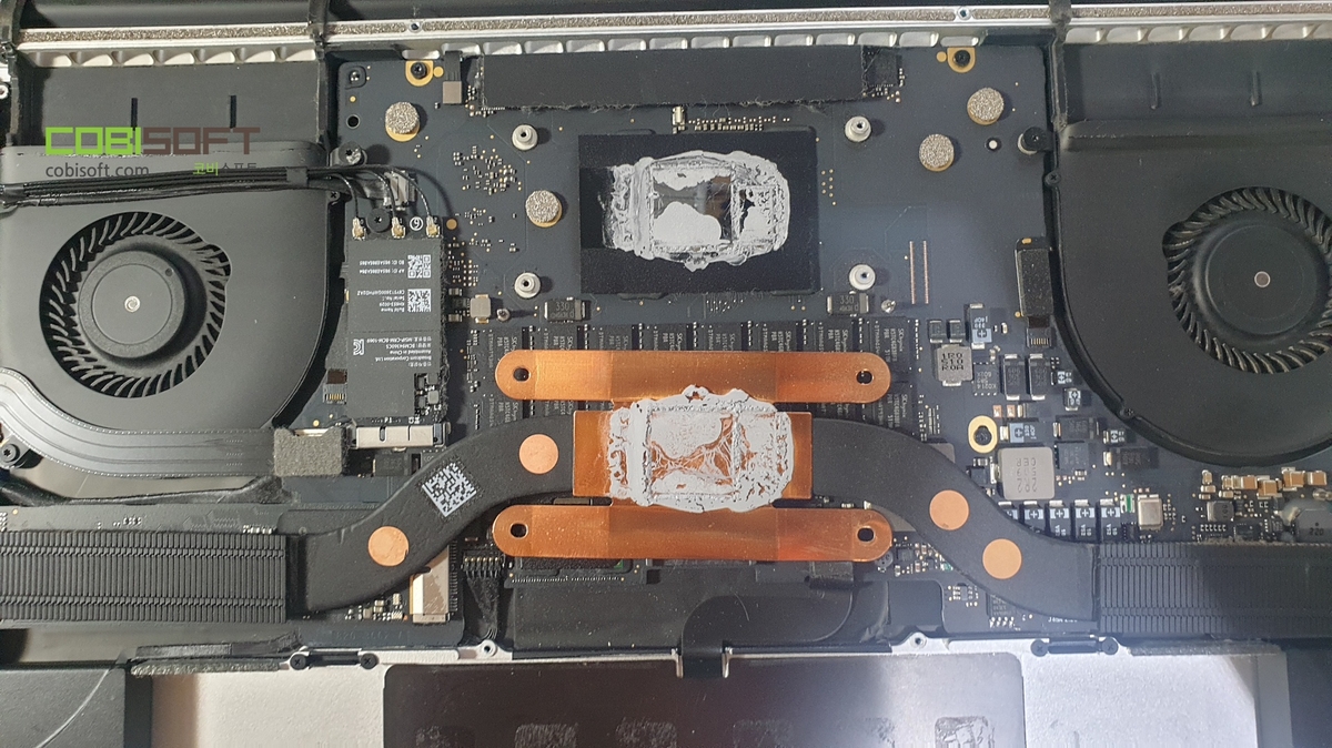 내부에 먼지가 많았고 그동안 맥북 청소를 하지 않았기에 써멀 재도포 작업도 추가해서 완전히 조립 전 깔끔하게 먼지도 털고 생생한 써멀로 도포하고 조립을 했습니다.