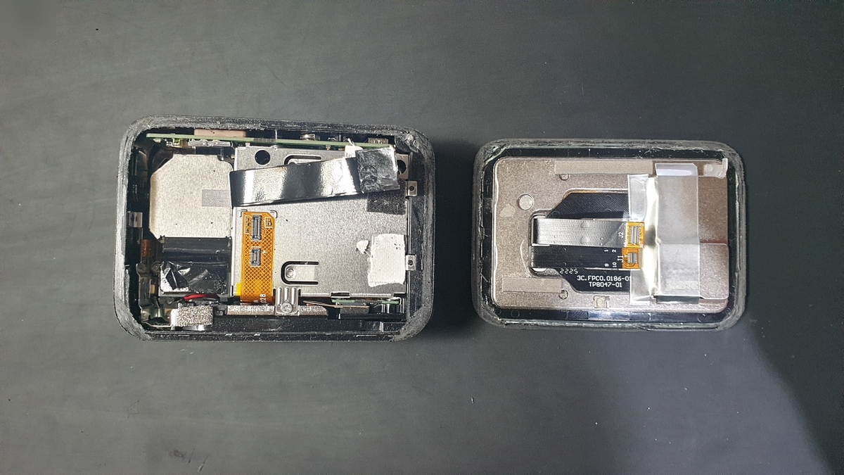 고프로 액정 분리 후 배터리를 담는? 하우징 분리! 잘 보이지는 않지만 아주 작은 나사 하나와 숨겨진 나사 2개로 고정되며 뒤쪽에 보드와 연결되는 커넥터도 있기에 신중하게 구조를 생각하면서 분리를 해줘야 됩니다.